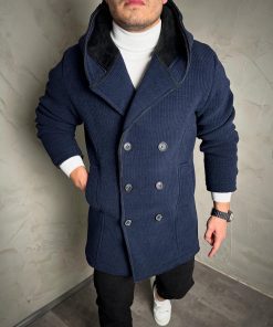 • MEN’S DOUBLE BREASTED COAT -BLUE-